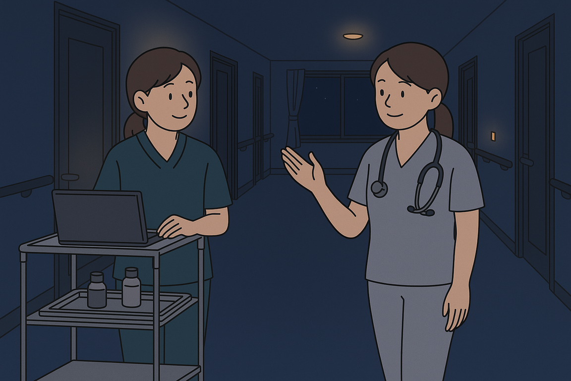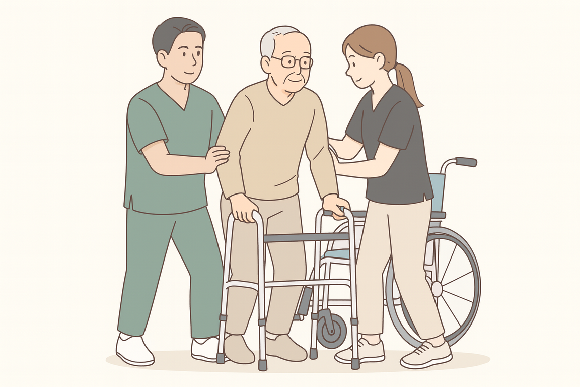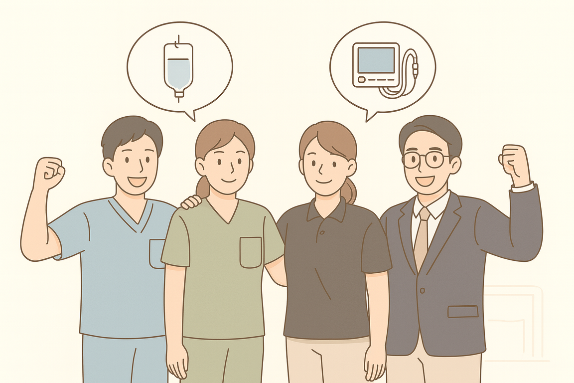 看護師・介護士・リハ職・事務が連携し、24時間365日体制で対応。医療的判断も即時に行える環境です。